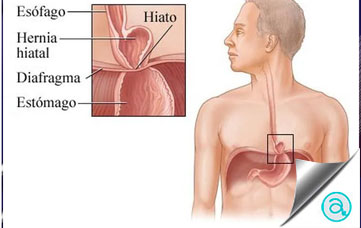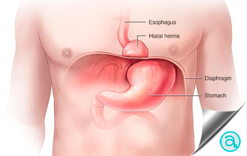 Cuando la abertura (hiato) del músculo que está entre el abdomen y el tórax (diafragma) es muy grande, una parte del estómago puede deslizarse hasta la cavidad torácica. Esta condición puede causar sensación de acidez (reflujo gastroesofágico, GER, por sus siglas en inglés) debido a que el ácido gástrico fluye inversamente del estómago al esófago. La operación de una hernia hiatal es una cirugía de reparación de una protrusión del tejido estomacal a través del músculo localizado entre el abdomen y el tórax (diafragma).